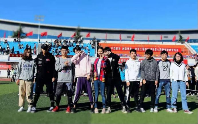 在运动会结束后,员工会工作人员在中心操场合影留念。