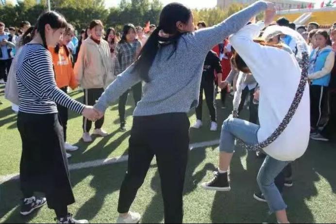 接下来是下午场的比赛,在环环相扣的比赛,参赛人员为来自不同专业12名女生,她们经过十几天早晚艰苦训练之后,愈发凝结成了一个整体,齐心协力,永不放弃!在比赛的过程中,她们从未放开彼此的双手,手脚并用,相互帮助,飞速的跨过呼啦圈,完成了循环两周的比赛任务,最终取得了47秒的好成绩!作为下午的第一个项目,这12位女生并没有辜负大家的期望,她们用自己的努力证明巾帼丝毫不让须眉,体现了团队精神协作的精神的精神,诠释“不负韶华,出彩青春”的心里运动会主题,绽放出独属于新传女生的光彩!